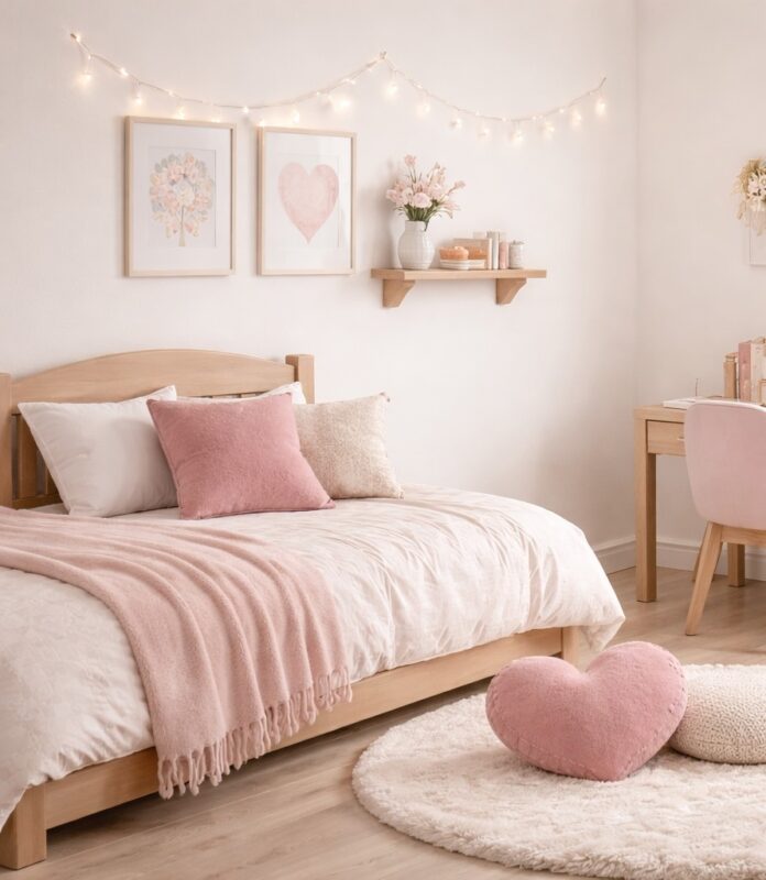 子供部屋の壁紙は白にして、可愛いクッションを沢山置いたりしても素敵ですよ~♪