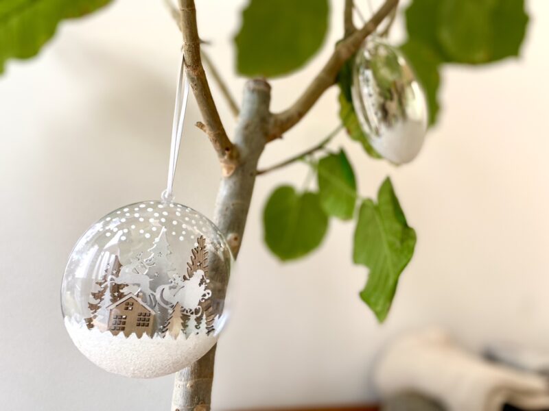 ② 観葉植物×クリアオーナメントで“軽やかな冬”を演出