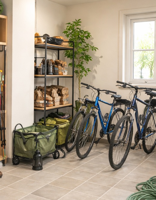 土間があれば、多少汚れていても気にせず置けるので、