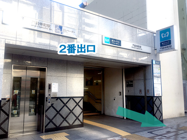 木場駅寄りの改札から、1番出口または2番出口をご利用ください。1番出口には階段、2番出口には階段とエレベーターがあります。