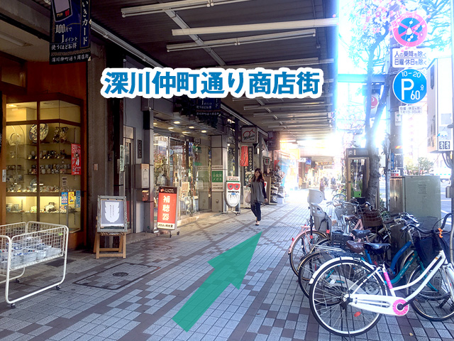 永代通りを木場方面へ進みます。深川仲町通り商店街です。