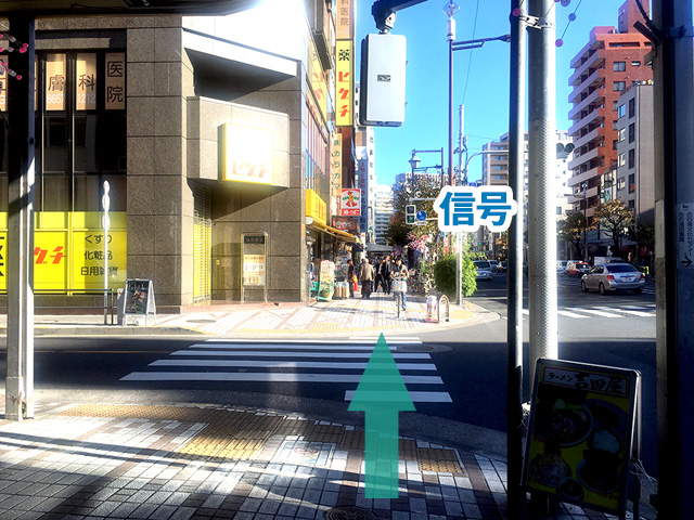 八百屋のある交差点の信号を渡り、まだ真っすぐ進みます。