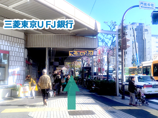 角には三菱東京UFJ銀行があります。そのまま永代通りを木場方面に進みます。
