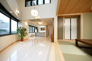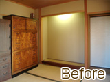 和室はグンとグレードアップ!個室としてお使いだった和室の間仕切りを取り、リビングと一体の空間にすることで、広がりのある、ダイナミックな中にもほっと落ち着ける、温かい和の雰囲気がプラスされました。