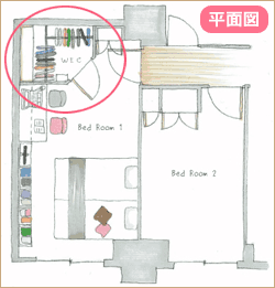 ウォークインクローゼットの形はそのままで、内部を使いやすく考え、プランニングさせていただきました。