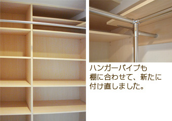 ウォークインクローゼットの形はそのままで、内部を使いやすく