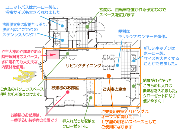 話を良く聞いてくれて、ちょっと希望を伝えると、すぐに、図面やパースなどを持ってきてくれたので、自分たちの希望に合った住まいが作れそうと感じて、エコリフォームさんに決めました。