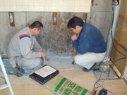 引きなおすにあたっては、床下のコンクリートの一部を壊して配管をえざるを得ませんでした。