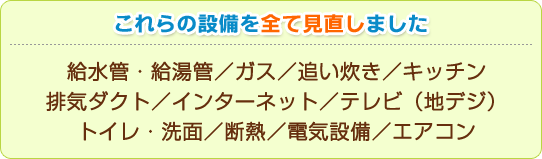 | 全ての設備を見直し、新築に劣らない性能を実現! | |