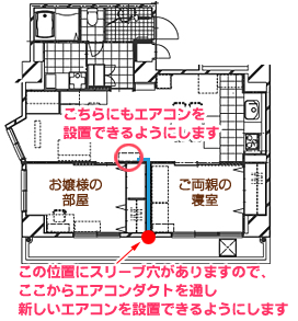 そこで、リビングもエアコンを設置できるように、エアコンダクトを新設することになりました。