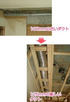 そして、通風も今までよりも良くなるように、ダクトサイズに変更することになりました。