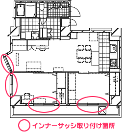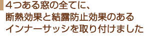 4つある窓の全てに、断熱効果のあるインナーサッシを取り付けました