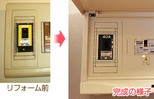 管理会社さんに確認したところ、アンペア数を上げてもOKとのことでしたので、 今回のリフォームで40Aに変更いたしました。