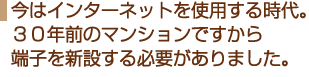 今はインターネットを使用する時代。30年前のマンションですから端子を新設する必要がありました。