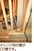 CD管という中が空洞になった管を、あらかじめ壁の中に配管しておきます。