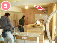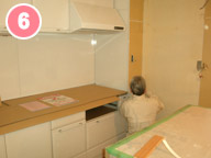 新しいキッチンを取り付けます。飛び出ていたダクトの先は、新しいキッチンの整流板に繋げられました。
