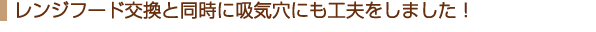 レンジフード交換と同時に吸気穴にも工夫をしました!