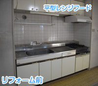 こちらのお宅のキッチンのレンジフードは、もともと「平型」と呼ばれるタイプでした。