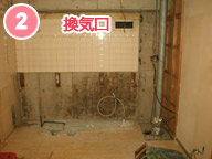 キッチンと、その横の壁を解体。右上の穴が換気口です。