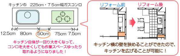 ちなみに、壁の幅を少し縮めることができたので、キッチンのサイズを大きくすることが できるようになりました♪