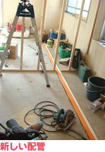 キッチンへまわす新しいお湯の管も、このスペースを利用して通しています。