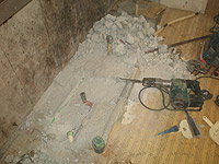 壊した部分のコンクリートは、通常のものとは異なり、少し気泡を含んだようなそれほど硬くないコンクリートだった為、壊すこと自体はやり易かったのですが、それでもやはり大きな音が出てしまいます。