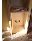 再び壁を作ります。換気口に繋いだダクトの先が、壁から出ていますね。