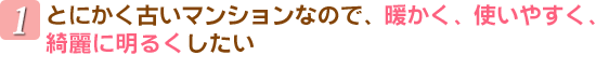 【1】とにかく古いマンションなので、暖かく使いやすく、きれいに明るくしたい