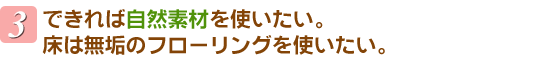 【3】できれば自然素材を使いたい。床は無垢のフローリングを規模。