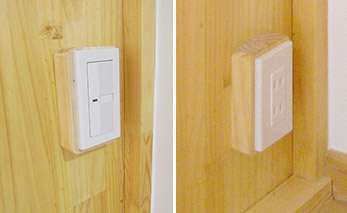 スイッチボックスも可愛く木で加工し、デザイン性のある インテリアの一部にしてしまいました!