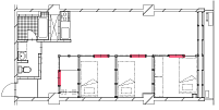 3つの個室に収納はあえて設けず、 玄関に近い箇所に設けたウォークインクローゼットを活用 |
