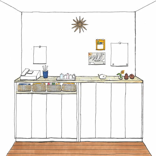 ここには既にお持ちのバスケットがぴったりと収まるよう、バスケットの寸法を測ってから設計しました。