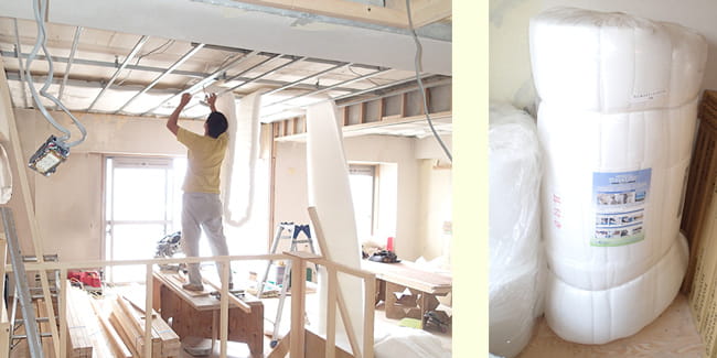 解体した天井には新たに断熱材を追加。屋上から伝わる熱を遮るので、夏も涼しく過ごすことができます。