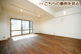 床の他、和風の壁や天井も全て取り払い、隣の洋室と繋げてひと続きの空間とする