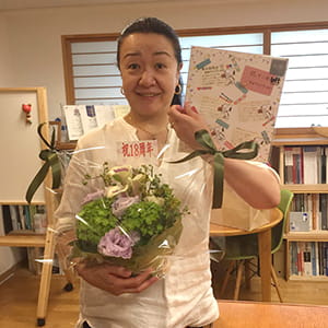 今日はエコリフォーム創立記念日なので、みんなからお花と色紙をプレゼントしました。ステキなお花です!そして夜はパーティーです。
