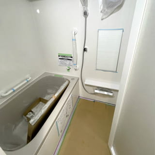 アスベスト含有処理の対象になっているパネルは、カバーをかけて運び出しました。「アスベストを使っているユニットバス」と聞くと心配になるかもしれませんが、解体時などに粉塵として飛散するのが危ないんだそうです。ふつうに使っている分には安心ですね。