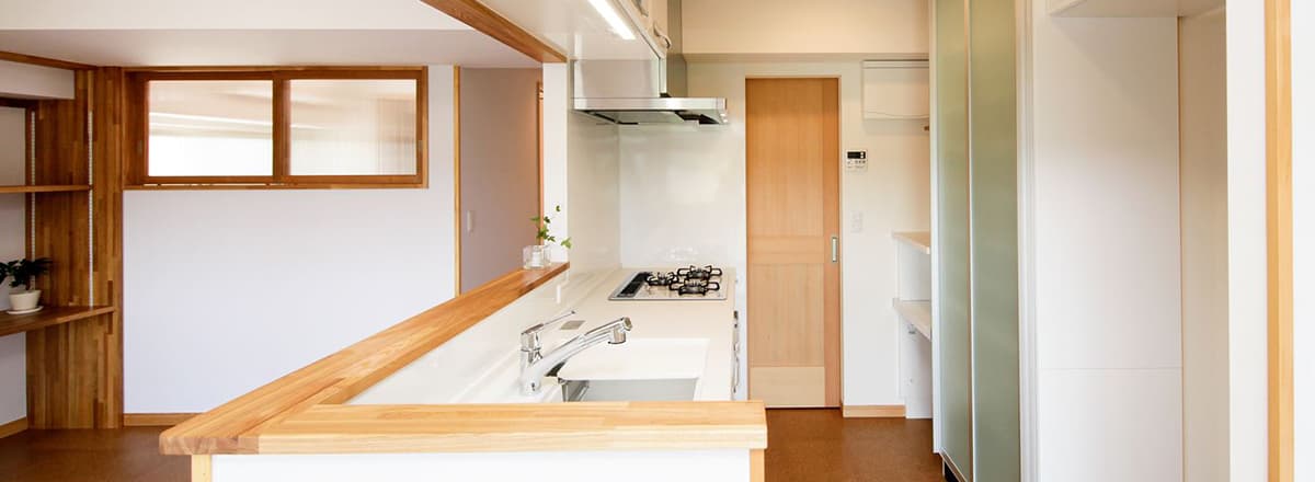家事動線はできればまとめたいと思っていました。以前はキッチンから洗面室に行くまでは廊下を通っていかなければならなったですが、キッチンから洗面室に直で入れた方が動線は短くなります。
